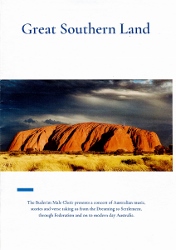 The Choir's production of its Great Southern Land concert series included music, stories and verse - a journey from the Dreaming, through settlement to modern day Australia. Balladeer Ian Rix was special guest artist with bush poet Peta Beattie providing great entertainment.